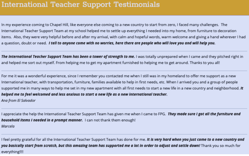 PTA sponsored resources for new International teachers